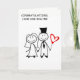 Cette charmante carte est destinée au couple spécial le jour de son mariage. Elle comporte des personnages bâtons de jeunes mariés au style minimaliste mais extrêmement évocateur.