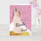 Félicitations pour la mariée pour ses récentes noces. Carte de voeux avec l'illustration d'une mariée avec le teint foncé portant une longue robe à flot et tenant un bouquet. Ajoutez le nom de la mariée à la couverture comme vous le souhaitez. Copyright © Shoaff Ballanger Studios, 2022.