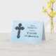 Votre fils est un homme généreux qui aime Dieu et les gens. Souhaitez-lui le meilleur et faites-lui savoir que vous êtes fier de lui à l'occasion de son Ordination à la Prêtrise avec cette belle et élégante carte de Félicitations. Un design chrétien avec une grande et belle croix ornée sur un fond bleu clair avec un message religieux.