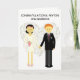 Cette charmante carte est pour ce couple spécial qui a franchi le pas du mariage après leurs fiançailles pleines de joie. Peut-être étiez-vous présent à leur mariage, ou peut-être pas, mais dans tous les cas, vous vouliez leur envoyer une carte qui exprime à quel point vous vous souciez d'eux. À l'extérieur figure un design moderne et épuré représentant une mariée et un marié élégants, mais ils sont dessinés en style cartoon et pourraient représenter presque n'importe qui. C'est drôle, avec une touche rustique, mais surtout moderne. Au dos se trouve un ensemble de cœurs inspirés de l'aquarelle, mais nous vous encourageons à le remplacer par une photo de vous-même pour rendre la carte encore plus personnelle. À l'intérieur, nous avons écrit un message qui convient parfaitement à l'occasion ; mais au cas où il aurait besoin d'un petit quelque chose de personnel, vous pouvez le personnaliser avec