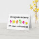 Une carte de félicitations amusante pour votre départ à la retraite avec des empreintes digitales en rose, orange, jaune et vert. Le texte à l'intérieur de la carte de vœux dit "De nous tous", mais peut être modifié et personnalisé pour répondre à vos besoins.