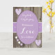 Personnalisez ce fond rustique de couleur bois foncé, avec des coeurs blancs et violets, carte de Jour de Mariage pour la Mariée et le Marié, avec leurs noms. 'Souhaitant votre Amour pour toute une Vie' 'Amour pour Toujours' Modifiez le texte à votre goût.