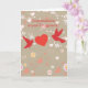 2 oiseaux rouges et un coeur sur le motif, félicitations sur votre fiançailles ! Le texte intérieur peut être customisé et personnalisé !