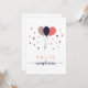Carte simple Feliz Cumpleaños avec ballons et coeurs.