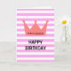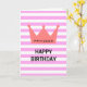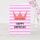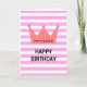 Cette belle carte d'anniversaire de style minimaliste chic avec une couronne rouge avec le texte personnalisé de princesse et un texte personnalisé d'anniversaire heureux sur arrière - plan motif rayé blanc et rose est un bon choix pour envoyer un message d'anniversaire à votre spécial comme votre grand-mère, maman, femme, petite amie ou fille, etc.