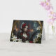 Une femme en noir, portant des roses rouges dans les cheveux, et encadrée d'or, est entourée de lys blancs sur cette belle et spectaculaire carte d'anniversaire.
