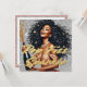Carte de vœux glamour pour le Nouvel An - Femme afro-américaine faisant sauter du champagne sur fond de paillettes argentées