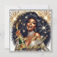 Carte de vœux glamour pour le Nouvel An - Femme noire faisant sauter un champagne avec des feux d'artifice