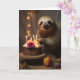 Swing dans une fête d'anniversaire qui est aussi agréable et délicieux qu'un jour de paresseux dans les arbres! Voici un paresseux, son visage rayonnant d'un bonheur que seul un paresseux peut rassembler, examinant un gâteau rustique comme si c'était la meilleure feuille de la jungle. Le gâteau, perché sur un stand de gâteaux en bois brut, est orné de glace blanche et de fleurs, qui semblent tentantes comme une lente ascension par temps chaud. Le tableau ci-dessous est décoré de fleurs coupées, ajoutant une touche de charme naturel à la scène. Ce n'est pas seulement une carte d'anniversaire ; c'est une fête au ralenti sur papier. A l'intérieur, il y a un espace vide, parfait pour vos sentiments paresseux ou des notes d'amour délicieuses.