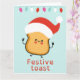 Commencez la saison des fêtes avec une tranche d'humour ! Funny Festive Toast Christmas Card présente un joyeux morceau de dessin animé de toast, avec un chapeau de Père Noël, prêt à répandre une certaine joie festive. Parfait pour tous ceux qui aiment un peu l'humour décalé