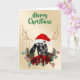 Chèvre goélette nubienne mignonne avec son chapeau de Père Noël et ses bois ornés de décorations rayées de Noël, entourée d'une couronne de vacances de poinsettias rouges, cônes de pins, verdure et un grand arc rouge. - oeuvre originale ©goatlady GetYerGoat™ - c'est une peinture de la chèvre de Sue Weaver - Chuck - il est adorable