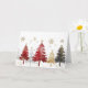 Festive Gold Foil et Red Christmas Scene Description : Des feuilles d'or et des arbres de Noël rouges avec des flocons de neige étincelants créent une scène festive sur un arrière - plan blanc. Un complément parfait à tout décor de vacances. Mots clés : feuille d'or scène de Noël, arbres de vacances rouges, flocons de neige étincelants, design arrière - plan blanc, décoration festive art, motif d'arbre de Noël, scène de vacances d'hiver, design joyeux de Noël, arbres enneigés, art forestier festif