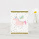 Carte Fête d'anniversaire licorne paillettes roses et or