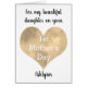 For a daughter's 1st Mother's Day Card a beautiful gold heart, which says "1st Mother's Day" The inside card reads "I hope that today and every day is filled with lots love, laughter & fun" Joyeux anniversaire !" Le Jour de la Mort peut être éasily. The back of this daughter Mother's Day Day Fonctions the sam heart along with the year, which you can easily edit.