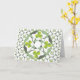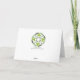 Parfait pour la Saint-Patrick, cette carte de voeux est ornée d'un motif d'inspiration celtique aux formes courbes entrelacées dans des teintes vertes et muettes est entrecoupée de shamrocks verts plus éclatants ou de trois trèfles de feuilles et d'une version plus grande du graphique aux formes de trèfle symbolisant la Sainte Trinité chrétienne.