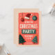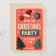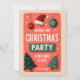 Carte de Noël de charme avec chapeau de Père Noël, ornements, sucre de canne et arbres décorés sur un arrière - plan rouge chaleureux, parfait pour une joyeuse fête de vacances.