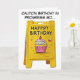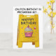C'est un design généré par l'IA. J'ai eu l'idée de créer un design avec un panneau jaune à plancher humide. Je pensais qu'il serait cool de le faire. Je ne pensais pas que je pourrais le faire, mais il s'avère que j'étais et il s'est avéré mieux que je ne le pensais. J'ai vu que les signes jaunes peuvent dire prudence nettoyage en cours de sorte que cela m'a donné l'idée d'écrire Caution Birthday en cours de réalisation ainsi... Et puis bien sûr le signe jaune dit heureux anniversaire donc je pense que cela pourrait avoir plus de sens que de dire ce qu'il a dit avant que je change le texte. Pour la police j'ai utilisé comic pro pour le texte sur la carte parce que j'aime son apparence.