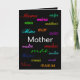 La carte "A Mother's Day" est une carte de voeux unique et adorable pour la fête des mères ! Le devant de la carte a le mot Mère écrit dans une variété de langues différentes affiché contre un arrière - plan noir moderne. La typographie élégante se poursuit avec le sens anglais du mot Mère placé à l'intérieur de la carte, ainsi qu'un beau message d'amour. Personnalisez facilement en changeant l'image, les polices ou les mots, pour créer votre propre message spécial pour Maman!