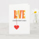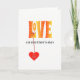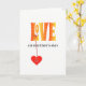 Ce design moderne et lumineux a LOVE en lettres majuscules orange-jaune avec un motif de fleurs blanches, et il y a un coeur rouge-orange pendent de L. Vous pouvez personnaliser cette carte en modifiant le texte sur le coeur, et à l'intérieur modifier le message aussi. Ou si vous préférez, vous pouvez simplement utiliser la suggestion "À la meilleure mère dans le monde". Envoie l'AMOUR le jour de la Mère.