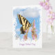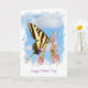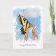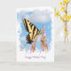 Une belle carte d'un papillon à queue épaisse sur une floraison printanière. Fait d'une manière artistique et peinte. Merveilleux compliments à l'intérieur pour cette personne spéciale pour la fête des mères.