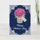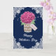 Belle carte de Fête des mères florale représentant un hydrangea rose et un bouquet de baby's breath dans un pot Mason avec une étiquette personnalisée. Personnalisez facilement ce modèle personnalisé pour créer une carte unique pour la Fête des mères. Ce modèle peut être personnalisé pour n'importe quelle occasion.