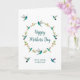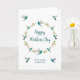 Carte de fête des Mères personnalisable en boho mignonne avec une couronne de colibris à queue rousse, colibris à tête violette et colibris à gros bec avec des éléments floraux sur un arrière - plan blanc. Vous pouvez modifier le style de police et la taille de police en cliquant sur l'outil "Modifier la conception". L'intérieur est laissé vide pour votre propre message manuscrit.