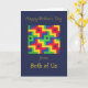 Une carte de la Fête des Mères 'de Two of Us' avec un design abstrait coloré et brillant de patchwork de cot-quilt de Judy Adamson.