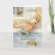 Carte de voeux pour la fête des mères ou pour l'anniversaire à laquelle vous pouvez ajouter votre salutation spéciale. Tableau vintage d'une adorable petite fille qui secoue son bébé avec son chiot à proximité.