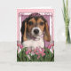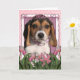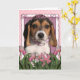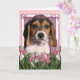 Carte Fête des mères - Tulipes roses - Chiot Beagle