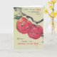 Une illustration vintage de deux pommes souriantes amoureuses pendues côte à côte sur un pommier. Le devant de la carte dit : « Amour à ma femme pour la fête des mères ! Chérie, tu es la prunelle de mes yeux. » Le message à l'intérieur de la carte est : « Ton amitié, ton engagement envers notre famille et ton amour définissent ma vie. La vie est merveilleuse grâce à toi ! Bonne fête des mères à ma femme ! »