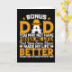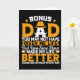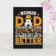 Carte de Fête des pères Bonus Papa Combien de fois avez-vous été debout dans un magasin, lisant la carte de voeux après la carte de voeux seulement pour réaliser qu'aucun d'entre eux n'express pleinement ce que vous essayez de dire? La lutte est maintenant terminée ! A Zazzle, vous pouvez customiser la carte pour dire EXACTEMENT ce que vous voulez qu'elle dise ! Non seulement vous pouvez choisir parmi des milliers de modèles, mais vous pouvez aussi choisir la taille et le type de papier. Après avoir conçu votre carte de voeux, envoyez-les en chemin avec des autocollants et des étiquettes parfaitement coordonnés pour correspondre à votre carte. Des voeux d'anniversaire aux anniversaires mariages, des voeux de vacances à un simple merci, laissez Zazzle être votre boutique de cartes de voeux à guichet unique!