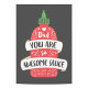 Carte brillante et fantaisiste avec une bouteille de sauce chaude rouge sur un arrière - plan jaune avec les mots "Papa, tu es tellement génial sauce. Bonne Fête des pères." | Design par Shelby Allison