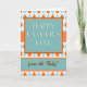Fête des pères de bébé / enfant à dernier né, carte de voeux papier. Jacquard moderne et contemporain avec motifs géométriques de diamants et de lignes. Le design se décline en orange, blanc et bleu. motif Jacquard avec l'aimable autorisation de KArnold/publicdomainpictures. Copyright © Shoaff Ballanger Studios.
