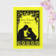 Sul Y Tadau Hapus, Bonne Fête des Pères, carte de voeux papier écrite en gallois. La carte présente une silhouette vintage d'un père et d'un enfant avec des fleurs en jaune et noir brillant. copyright © Shoaff Ballanger Studios, 2025.