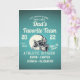 L'équipe de football préférée de papa avec le nom des enfants. Carte de Fête des pères sur le thème du football. Style moderne et rétro pour célébrer les papas, les pères et les papas.