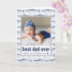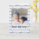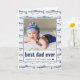 La carte de voeux de fête des pères présente un motif de poisson, votre photo préférée, et "meilleur papa jamais" dans la typographie moderne en bleu. À l'intérieur, customisez le message ou supprimez le texte d'un message manuscrit. Message-moi si vous avez besoin d'aide ou avez des demandes spéciales.