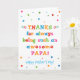 Tu appelles ton père papa, pas papa. Imaginez à quel point Papa sera excité de recevoir une carte de Fête des pères qui lui sera adressée spécialement ! Ton papa va aussi adorer le design brillant et coloré de cette carte de Fête des pères qui dit "Merci d'être toujours un Papa aussi génial ! Bonne Fête des pères !" Rendre cette carte personnalisable ! Cliquez sur "Edit Design", "Inside Bottom/Right : Text & Images", "Text" et "Add text" pour écrire votre propre message personnalisé à Papa intérieur !