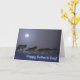 Une nuit d'hiver froide et illuminée par la lune; un sac à loup sur le rôti. Le texte "Bonne Fête des pères !" apparaît également.