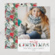 Décorez les halls avec un feuillage de Noël traditionnel pour vos cartes de vœux personnalisées ! Les poinsettias rouge vif, les baies de houx et les pommes de pin ajoutent une touche colorée de forêt dans un style aquarelle élégamment rustique. Ce design de Noël classique présente de doux accents floraux ornant chaque lettre, associés à une police script ludique. Le motif de feuillage complémentaire coordonne parfaitement le verso de la carte.