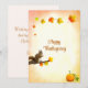Belles feuilles d'automne, petite carte de salutations de Thanksgiving pour écureuil et citrouille. Tout le texte peut être personnalisé.