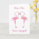 Rose, c'était l'amour au premier regard ! Ces élégants flamants roses de LeopardyNonsense sont parfaits pour féliciter un couple heureux sur leur fiançailles 💗 Vous pouvez personnaliser la carte avec leurs noms et messages sur le devant et à l'intérieur de la carte 🦩