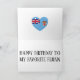 Le beau design comprend des ballons heureux et des bandes-tiques avec les mots "Joyeux anniversaire", recouverts des couleurs du drapeau fidjien. Le design est fini avec le coeur dans les couleurs du drapeau fidjien et le message d'anniversaire. Les éléments sont entièrement personnalisables à l'aide de la fonction "Customisez-le !". Cette carte d'anniversaire colorée est le cadeau parfait pour votre ami fidjien. © PaysDuMonde