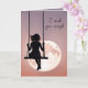 Silhouette fille sur une balançoire avec une pleine lune dans le ciel rose. Tout le texte peut être modifié.