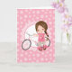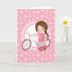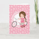 Carte Fille aux cheveux bruns à bicyclette - Rose Blanc