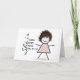 Jolie fille bâton avec des cheveux, des lunettes et une robe florale rose sur un fond blanc pour la fête des mères.
