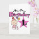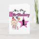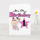 T-shirts, costumes, cartes, autocollants, magnets, sacs et autres vêtements de premier anniversaire de la fille de bébé et cadeaux avec une petite fille dans un T-shirt rose, une couche et un casquette de fête avec des ballons d'anniversaire!