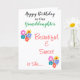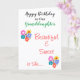 Fête de petite-fille. Personnalisez pour n'importe qui. La petite-fille est écrite en écriture verte. Belle et douce est elle est écrit sur le front en écriture rouge. Fleurs joliment colorées dans le bleu rose jaune vert orange contre arrière - plan blanc. Laissez un message spécial à l'intérieur ou personnalisez-le. Oeuvre originale et conception de versets de cartes © TamiraZDesigns