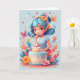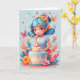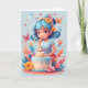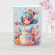 Carte Fille de dessin animé avec gâteau d'anniversaire |