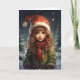 Jolie fille elf dans la neige avec un casquette rouge et foulard