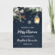 Joyeux Noël pour la carte fille et fils en droit avec feuillage d'hiver rustique et un arrière - plan enneigé de pays.